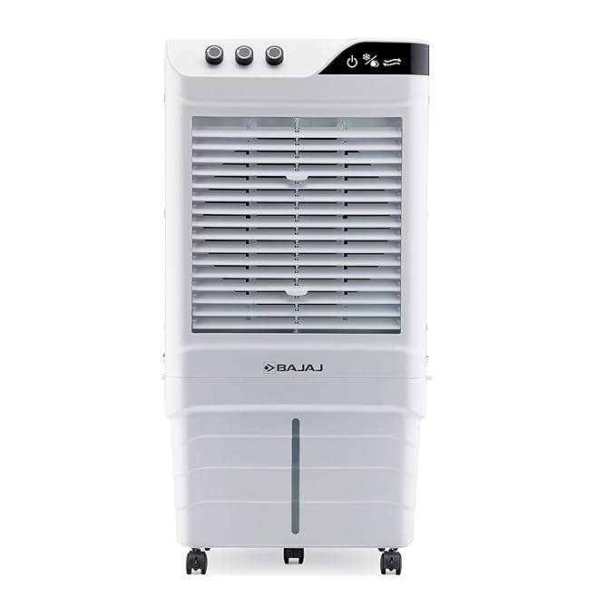 Bajaj’s DMH90 Neo is a power-packed cooler for bigger rooms. With a gigantic 90L capacity and 90 feet air throw, it guarantees long-lasting and effective cooling. The Duramarine pump and Hexacool technology provide durability and hygiene—perfect for families.